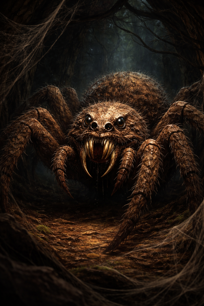 Nach seinem Tod wurde sein Körper von seiner Spinnenkolonie zurückgelassen, da Akromantulas sogar Artgenossen fressen können.